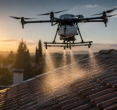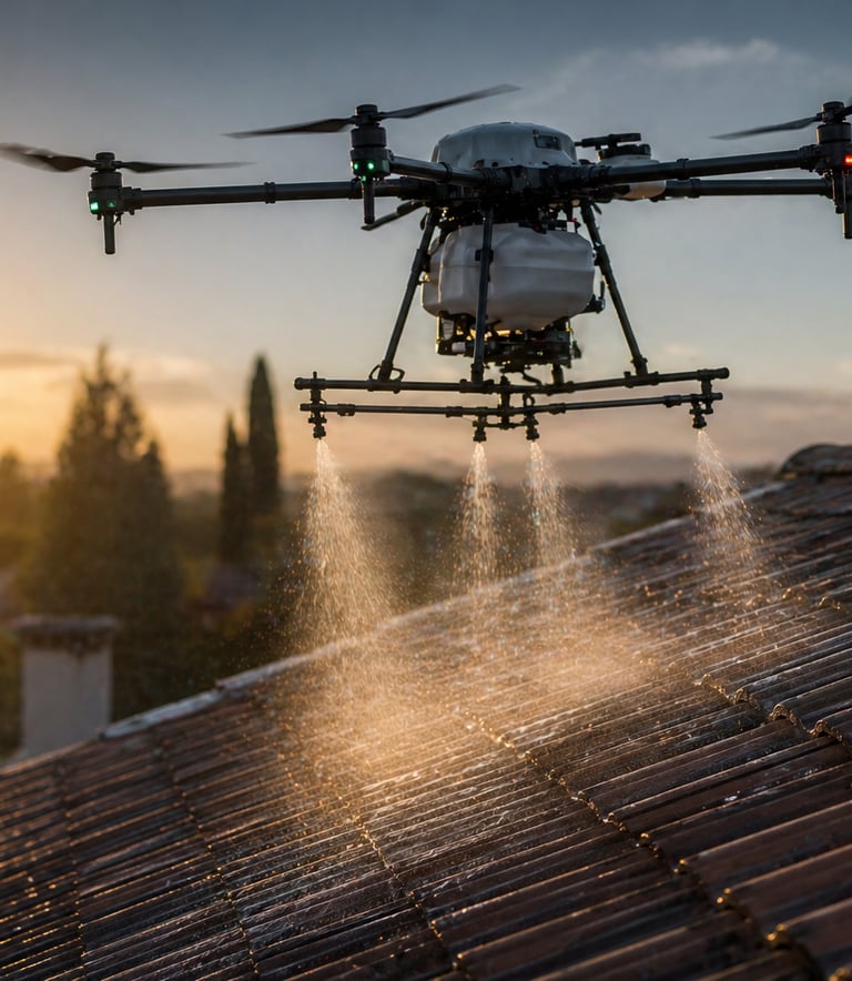 Nous utilisons des produits biodégradables alliés à une pulvérisation drone précise pour préserver vos surfaces et l'environnement.